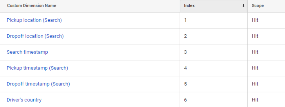 Since event label is a text type dimension, it has a limit of 2048 bytes (which is usually more than enough). My advice: Use event labels as a string with “key: value” pairs and delimiter. This way you can use labels later—parsing it and analyzing multiple parameters. Example of event label value: “Pickup location: Argentina, Salta, Salta Downtown | Dropoff location: Argentina, Mendoza, Mendoza Airport | Search timestamp: 2017-12-28 18:16:09 | Pickup timestamp: 2018-08-10 12:30:00 | Dropoff timestamp: 2018-08-15 12:00:00 | Country: fr | Driver age: 31.”